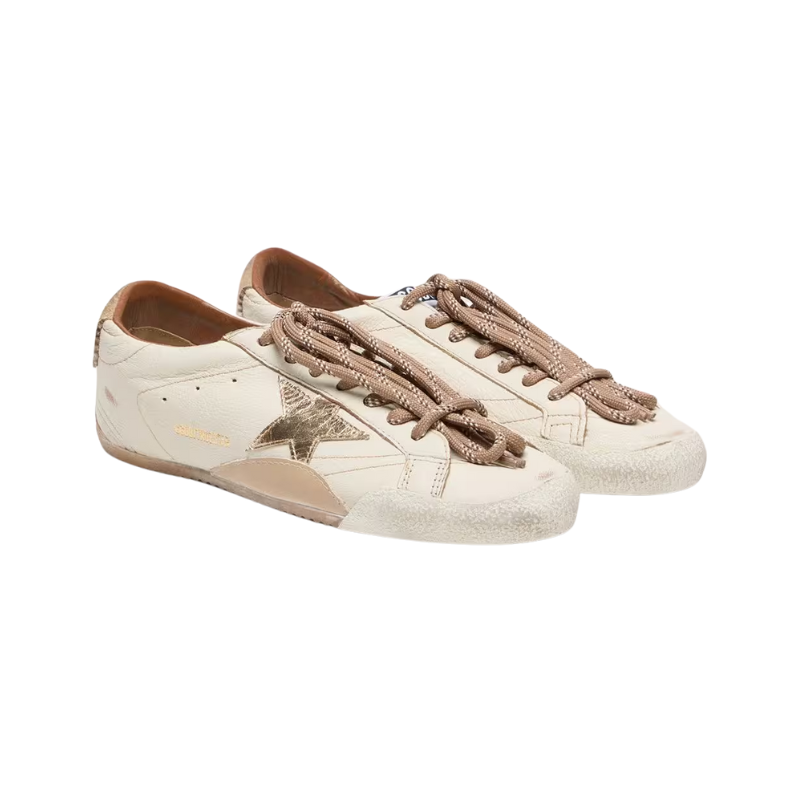 Golden Goose True-Star white nappa leather with a gold star and beige suede